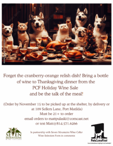 Looking for a tasty addition to your Thanksgiving meal, or even start your Christmas present shopping now? Look no further than these delicious wines, thanks to our partnership with Seven Mountains Wine Cellar! Orders are due by November 15th, so be sure to get yours in early. Orders and questions can be send to mattpulaski@comcast.net. You can find more info on our wine selection below.